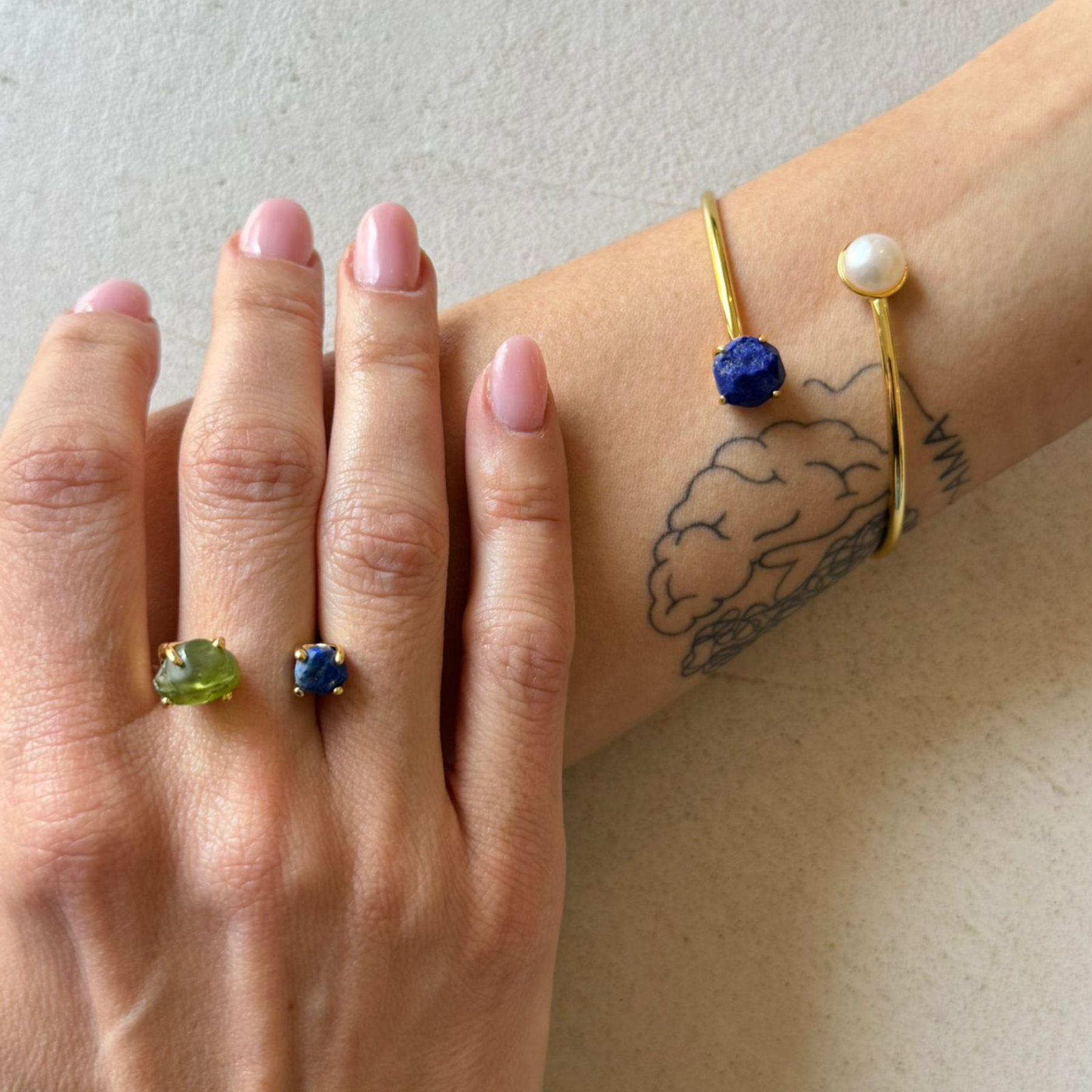The quality of materials and craftsmanship is undeniable, which is why all our jewelry is handcrafted from 925 sterling silver, ensuring durability and skin-friendly properties. Our jewelry is gold-plated and adorned with semi-precious stones, making each piece unique as no two stones are identically cut.